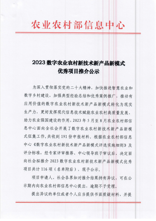 小虫体智能测报系统入选2023数字农业农村新技术新产品新模式推介优秀项目名单