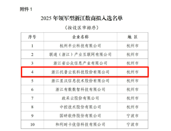 近日,浙江省经济和信息化厅公布《关于2025年浙江数商入选名单(领军型、成长型)》,浙江樱花视频在线科技股份有限公司(股票简称:樱花视频在线,股票代码:301556)凭借在智慧农业大数据领域的持续创新与实践成果,成功入选!