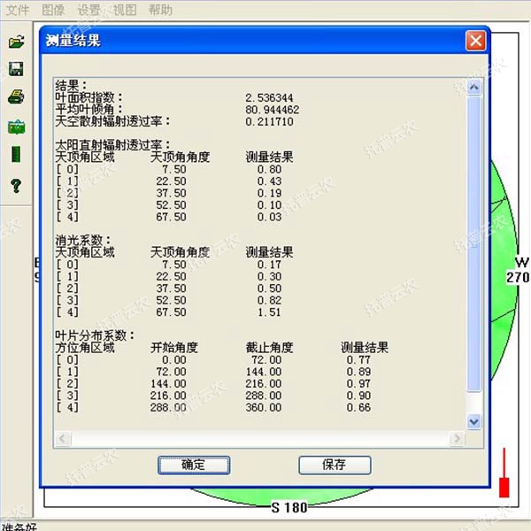 7、植物冠层图像分析仪配有专用植物分析软件,有选择所需图像区域的功能(天顶角可分10区,方位角可分10区),可屏蔽不合理的冠层部分,仅对有效图像区域进行分析,使测量数据更加精确。